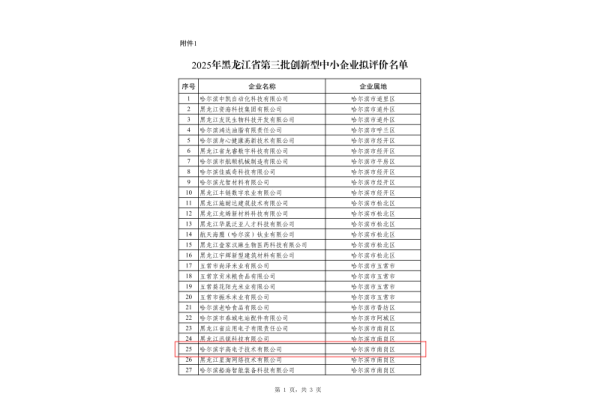 宇高电子获批黑龙江省专精特新中小企业认定和第三批创新型中小企业评价近日,黑龙江省工业和信息化厅公布专精特新中小企业拟认定名单和第三批创新型中小企业拟评价,哈尔滨宇高电子技术有限公司(以下简称“宇高电子”)凭借在密封电子器件多余物自动检测领域的技术突破与产业化成就顺利入选,标志着宇高电子在在多余物自动检测领域的研发能力、产业化水平及行业贡献再获权威认可。