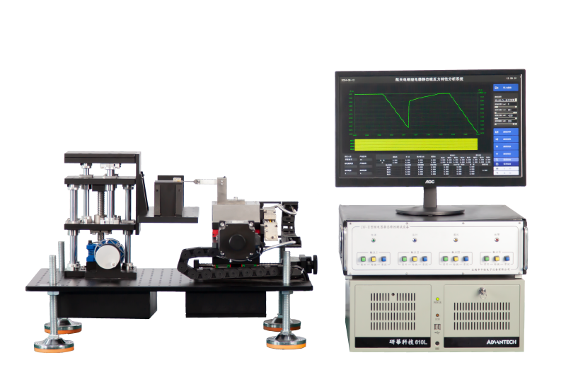 电磁继电器静态吸反力特性测试分析系统可实现各类电磁继电器静态吸反力特性的自动测量和数据处理,并且能够绘制继电器吸反力特性配合曲线,直观判断所测继电器是否能可靠动作,自动给出被测继电器各触点的动合超程、动断超程、自由行程以及关键点的衔铁位置与受力值,从而验证产品的性能参数是否达到指标要求。